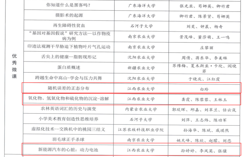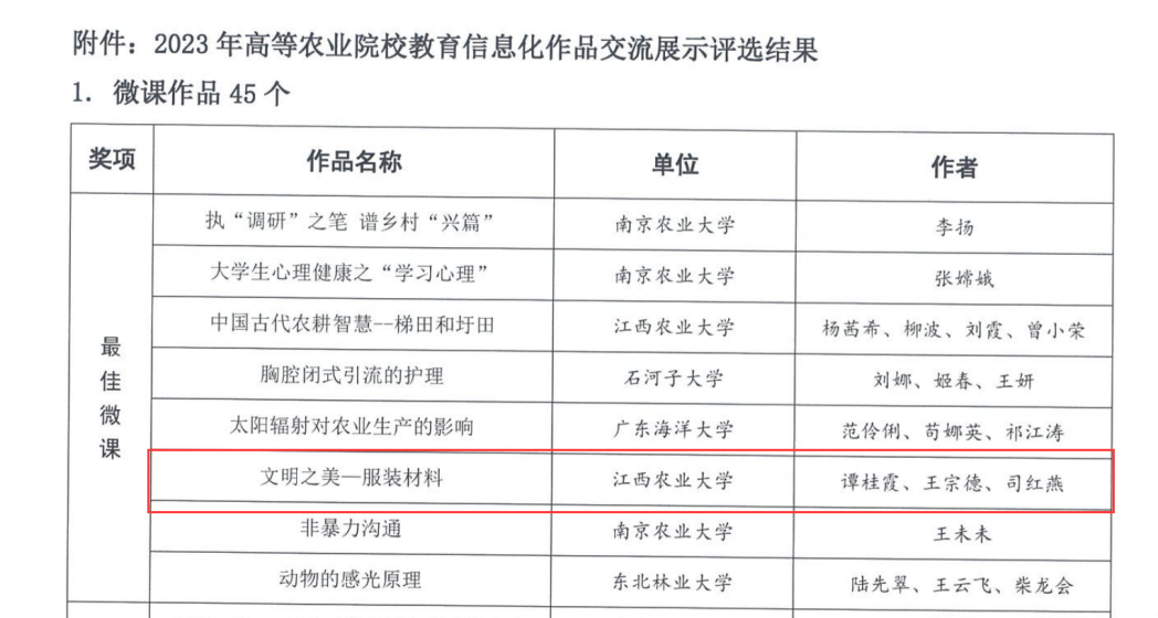 2023年12月6日,中国教育技术协会高等农业院校分会公布了2023年高等农业院校教育信息化作品交流展示评选结果,我校7件作品榜上有名,英国365官网申报4项作品,4项作品全部获奖,获奖数量居全校第一。谭桂霞、王宗德、司红燕报送的《文明之美——服装材料》被评为“最佳微课”;白玲报送的《随机误差的正态分布》,龚霞、陈蓉蓉、王林玉报送的《氧化物、氢氧化物和硫化物的沉淀—溶解》,孙婷婷、李凤英、张骥报送的《新能源汽车的心脏:动力电池》被评为“优秀微课”。