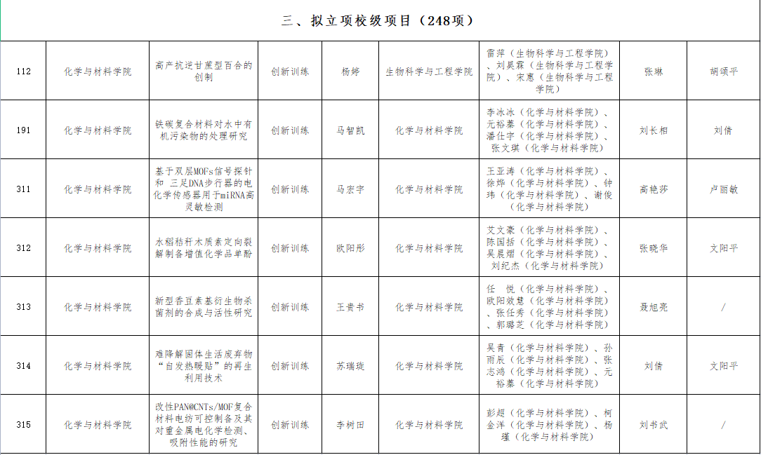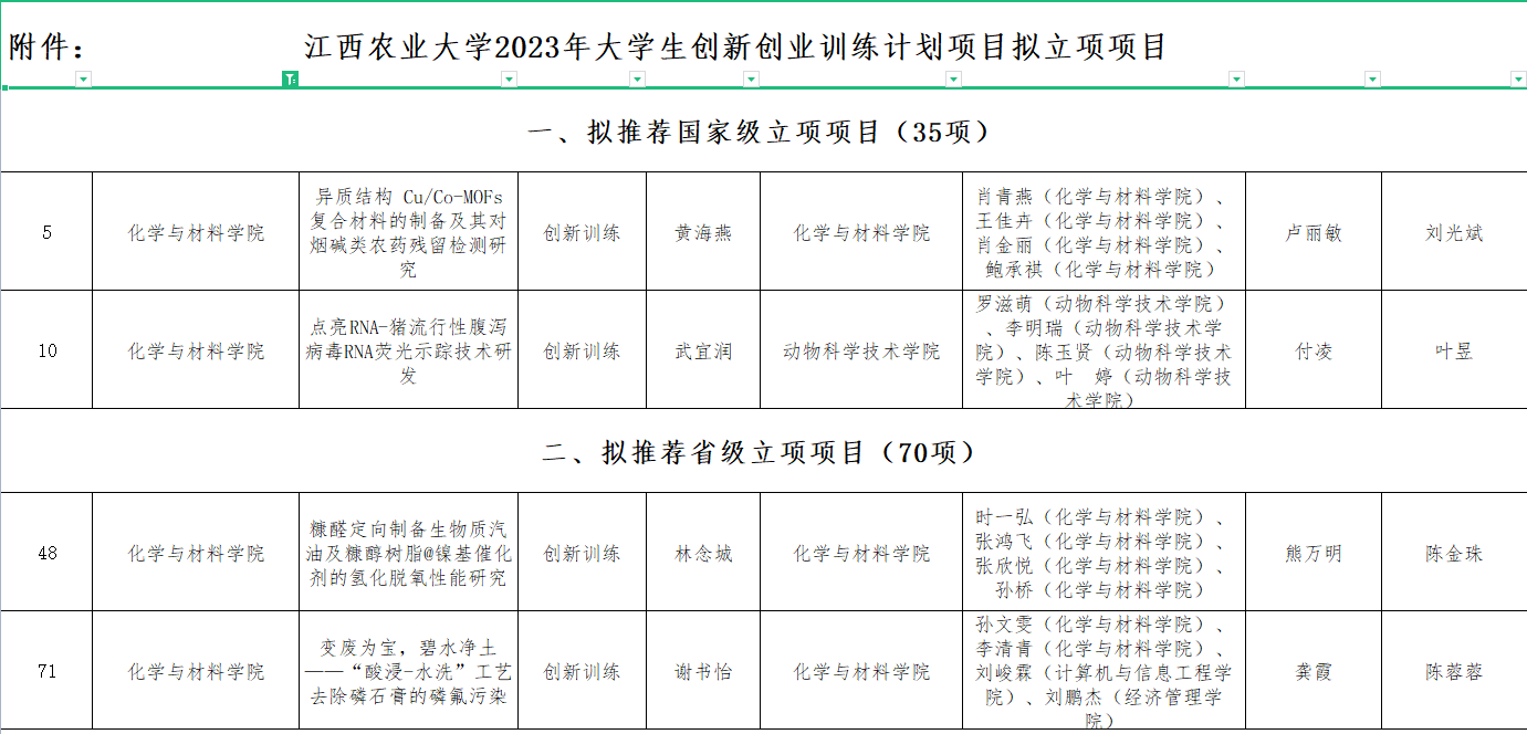 2023年4月8日,学校公布了2023年大学生创新创业训练计划项目评审结果,学校评审出国家级项目35项,省级项目70项,校级项目248项。英国365官网共有18个项目参与申报,11个项目获得立项,其中,国家级2项,省级2项和校级7项。卢丽敏和付凌老师获得国家级立项,熊万明和龚霞老师获得省级立项,张琳、刘长相、高艳莎、张晓华、聂旭亮、刘倩和刘书武7位老师获得校级立项。