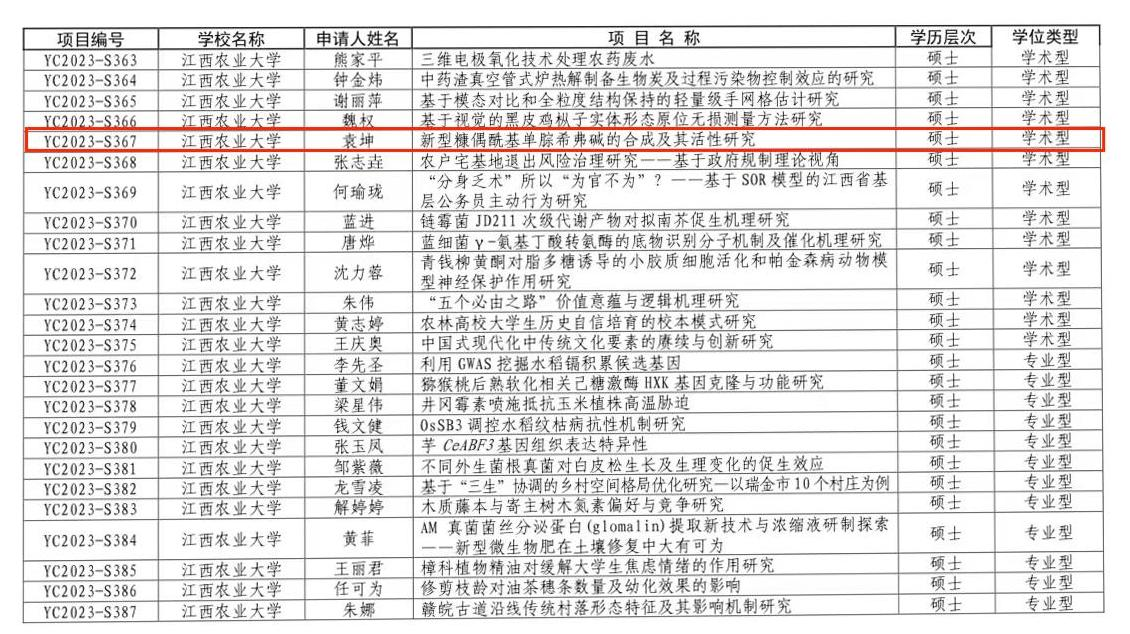 根据《关于开展江西省2023年度研究生创新专项资金项目工作的通知》(赣教研字〔2023〕12 号),英国365官网积极响应号召并有序组织开展了项目申报以及初评工作。经研究生院进一步评审公示,江西省教育厅核准,英国365官网成功获批1项2023年度研究生创新专项资金项目立项。