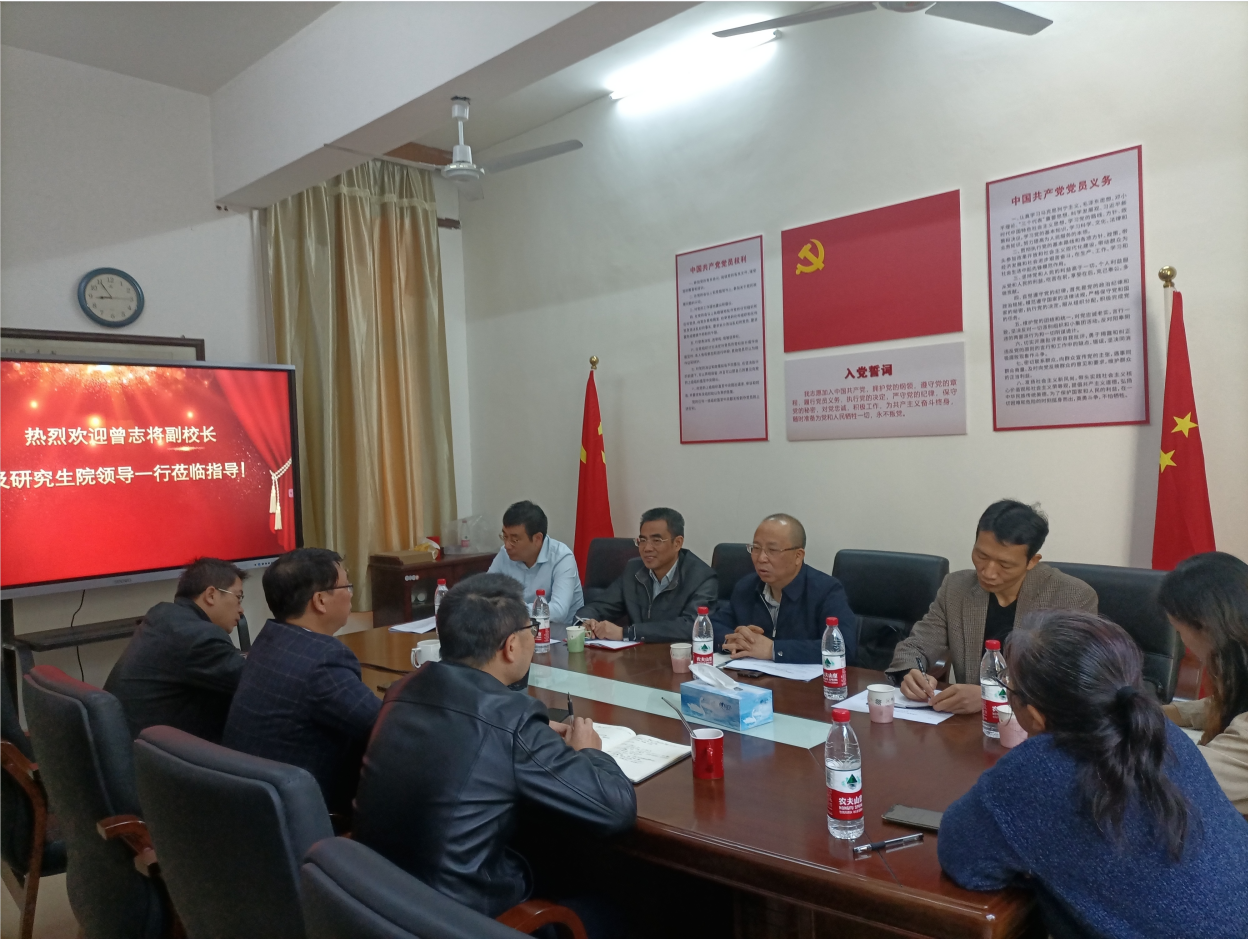 2022年1014日上午,校党委委员、副校长曾志将在研究生院陈美球院长一行陪同下,到院调研指导关于材料与化工专业硕士学位点申报工作。院全体班子成员、各科室负责人参加座谈会。