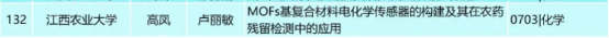 近日,江西省人民政府学位委员会办公室发布了《关于2023年江西省优秀博士硕士学位论文评审结果的公示》,英国365官网2020级化学专业硕士研究生高凤(导师:卢丽敏)的学位论文《MOFs基复合材料电化学传感器的构建及其在农药残留检测中的应用》获评2023年江西省优秀硕士学位论文。