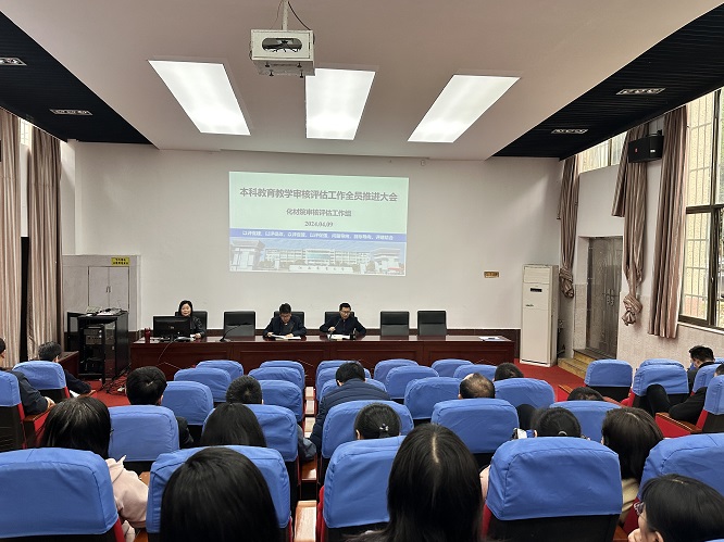 2024年4月9日下午2:00,学院在报告厅召开本科教育教学审核评估工作全员推进大会。学院党委书记刘庆言、副院长卢丽敏、副院长龚霞、学生党总支书记彭玉萌、教研室主任及全体教工老师参加会议。会议由龚霞副院长主持。