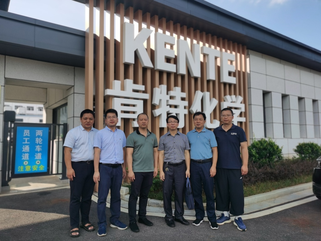 2022年7月21日,应永新县科技局邀请,王宗德院长、卢丽敏副院长黄喜根教授、彭大勇博士到永新县肯特化学有限公司开展调研,与肯特化学有限公司林永平总经理就如何加强校企合作,提高技术加工水平,降低产品成本和完善环保措施等方面进行商讨,同时就人才培养、就业等进行交流。