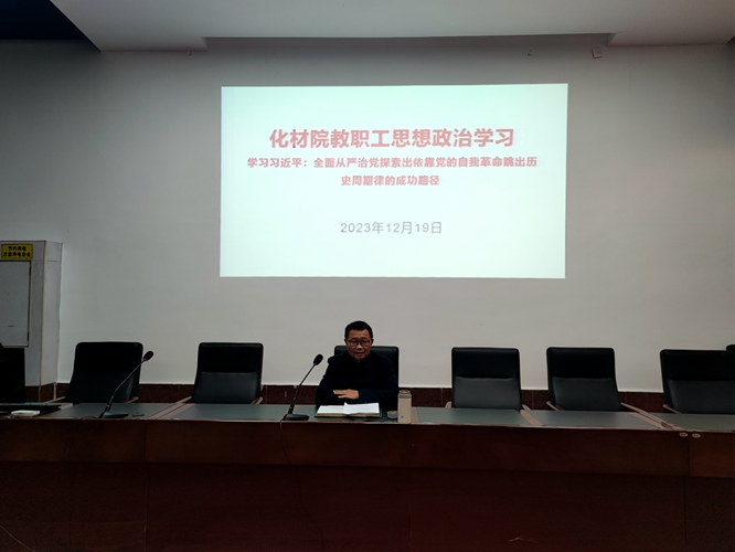 2023年12月19日14:10,学院在致学楼阶梯报告厅召开学院教职工大会,开展了教职工12月份思想政治学习。院党委书记刘庆言以“全面从严治党探索出依靠党的自我革命跳出历史周期率的成功路径”为题,带领全体教职工一同认真学习了习近平总书记在中国共产党十九届中央纪律检查委员会第六次全体会议上发表的重要讲话精神。
