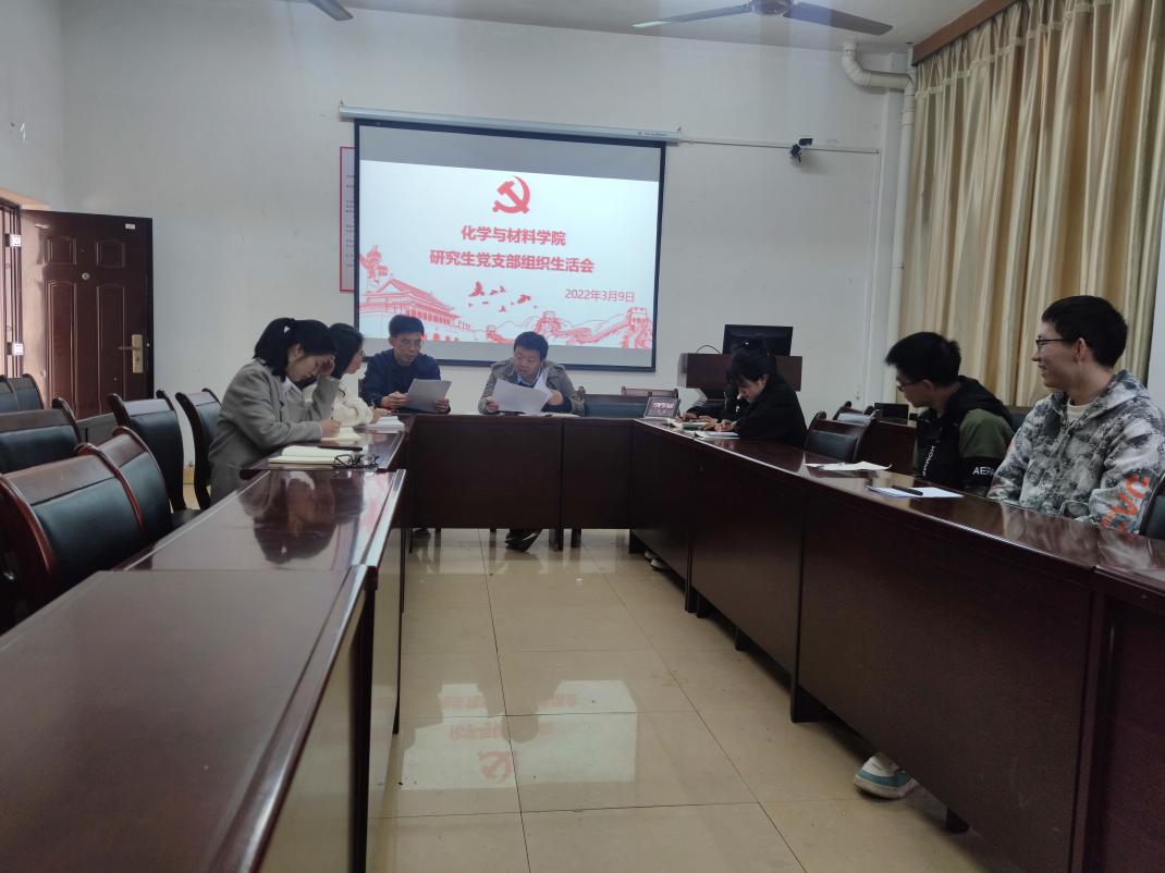 2022年3月9日,研究生党支部在研究生教室212召开了组织生活会及民主评议会议,线下6位及因疫情未返校3位党员通过“微信视频”线上参加,会议由党支部书记文阳平老师主持。