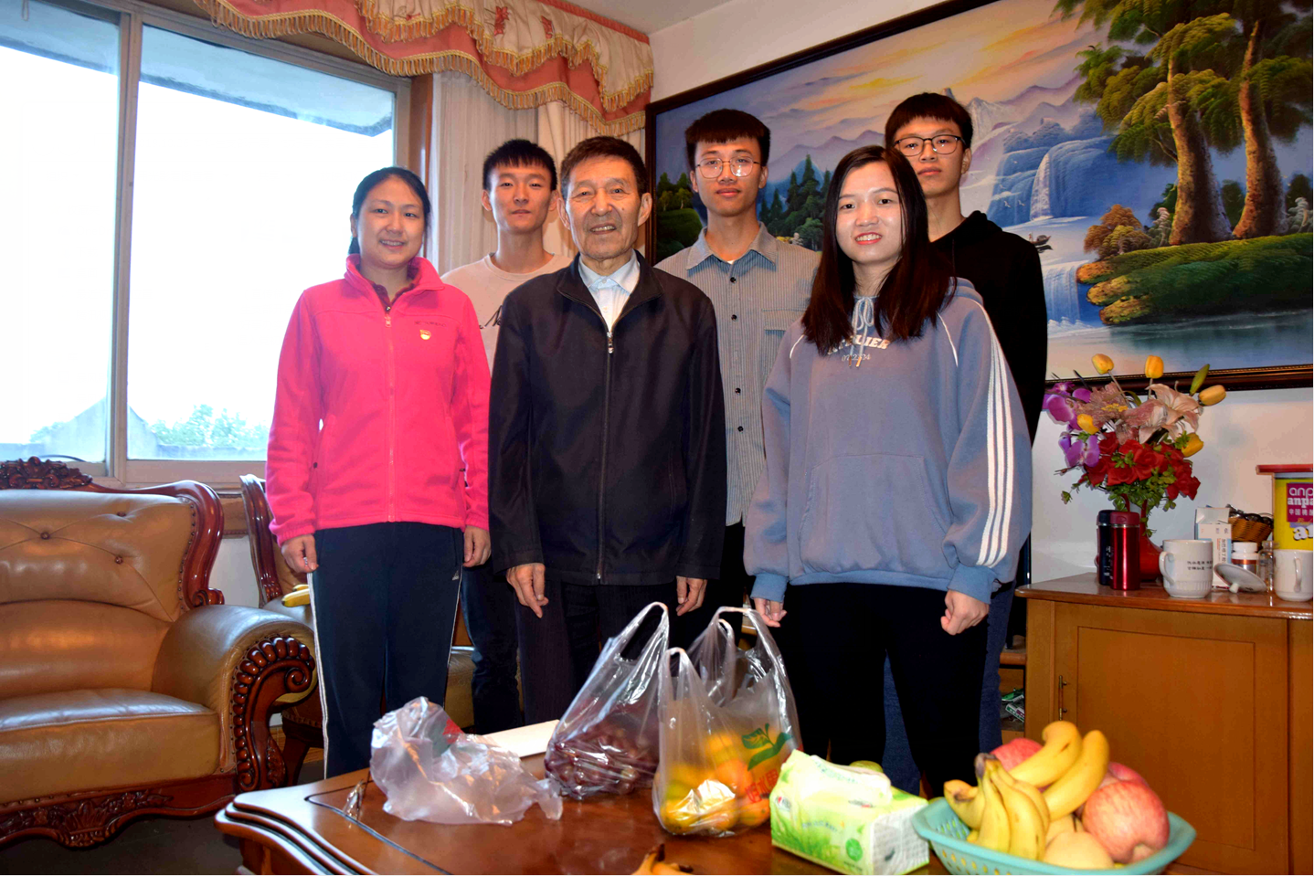 活动中,师生党员代表及党的近期发展对象来到理学院退休教职工王唐生、姚新、马念芳及庞惠君老师的家中,同老人忆旧岁、拉家常、谈变化,同时帮助老人打扫家中卫生。
