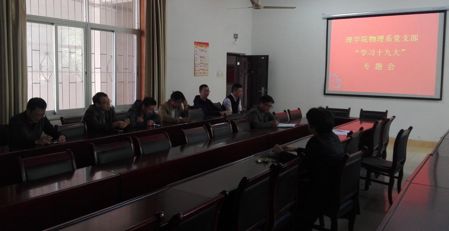 各支部、各团组织以多种形式开展学习活动:数学系党支部组织了学习十九大报告心得交流会;研究生党支部组织全体党员赴八一起义纪念馆和南昌舰参观,组织了十九大报告专题学习会。本科生党支部分小组进行专题学习《党的十九大精神传达提纲》,与会党员交流了学习党的十九大精神心得体会;化学系党支部、物理系党支部、行政党支部分别组织了党的十九大精神专题学习会;学院团委学生会开展了“青春喜迎十九大,不忘初心跟党走”主题征文活动;应化1703班团支部自主开展“喜迎十九大,党团在心中——十九大知多少”专题调研。(廖超 周国平)