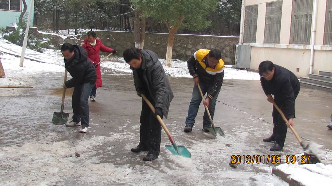 为了保障师生出入安全,5日上午,在学院领导的带领下,行政支部党员和办公室人员清扫校园积雪。大家团结协作,干劲十足,有的扫雪,有的铲雪,经过一番奋战,将学院前道路的积雪打扫得干干净净,开辟出一条洋溢着温情的畅通之路。