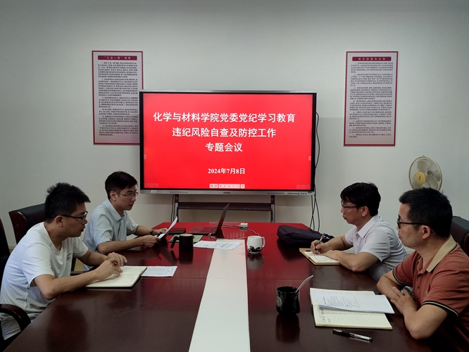 2024年7月8日9:20,学院党委召开专题会议,研究部署党纪学习教育违纪风险自查及防控工作。党委领导班子成员参会,学生党总支书记彭玉萌列席会议,会议由学院党委书记刘庆言主持。