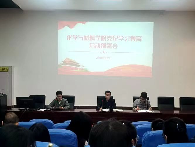 2024年4月16日15:00,学院党纪学习教育启动部署会在学院致学楼阶梯报告厅召开。学院党委书记刘庆言、副院长卢丽敏、学生党总支书记彭玉萌及全体师生党员参加会议,彭玉萌主持会议。