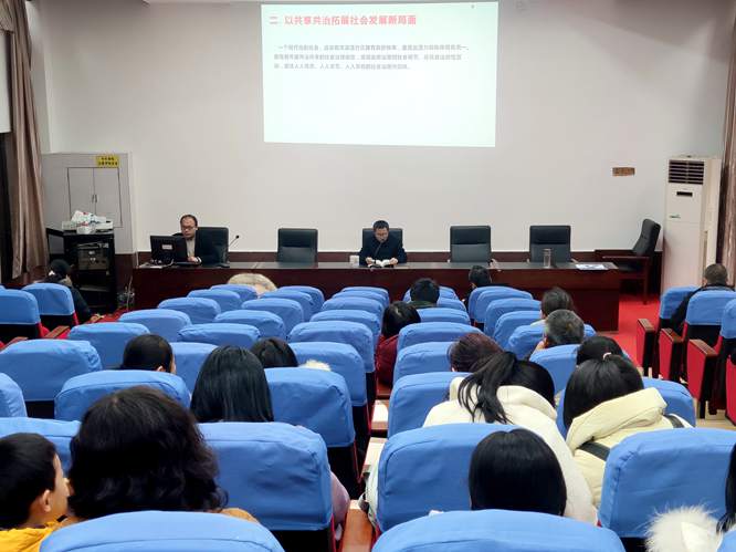 2023年2月10日14:10,学院在致学楼大会议室召开学院教职工大会,开展了2月份政治学习,院党委书记刘庆言带领全体教职工学习了《习近平谈治国理政》第四卷之十三《以保障和改善民生为重点加强社会建设》的相关内容。