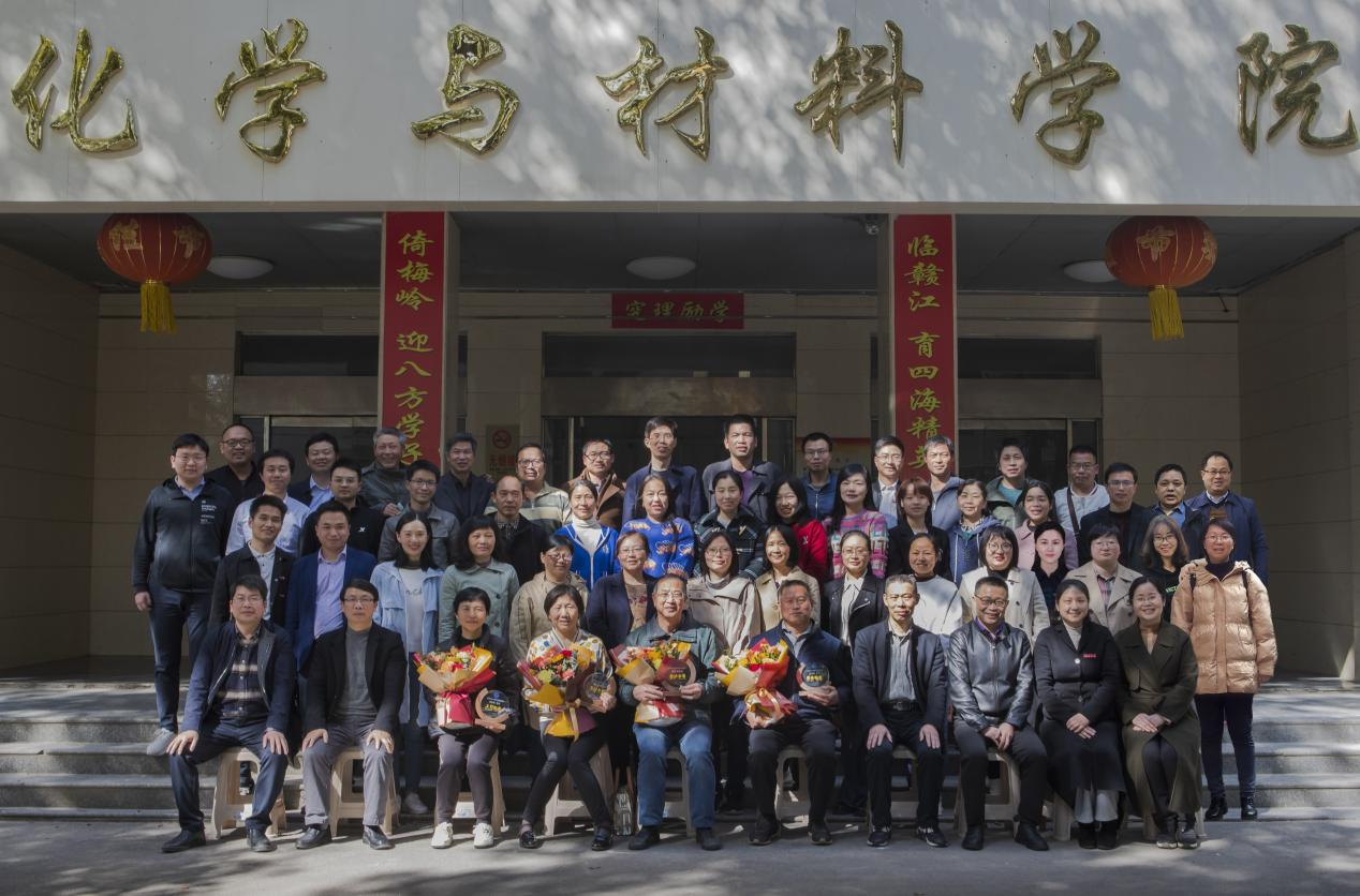 学院还为4位教师赠送了鲜花和纪念品,全院教职工在学院门口进行合影留念,记录这一难忘时刻。