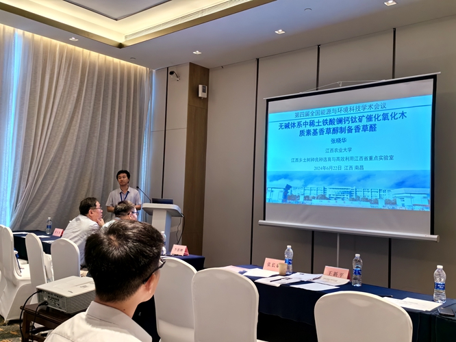 为进一步促进学科交叉融合、产学研用协同创新和推动高素质化工创新人才的培养,2024年6月22—23日,化学系教工党支部委员张晓华副教授参加由中国能源学会能源与环境专业委员会主办、南昌大学承办、江西省科学院应用化学研究所协办的“第四届全国能源与环境科技学术会议”。22日下午,张晓华副教授在生物质开发和应用技术分会场做了以《无碱体系中稀土铁酸镧钙钛矿催化氧化木质素基香草醇制备香草醛》为题的学术报告。