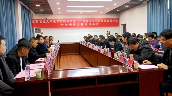 2024年1月13日上午,为进一步深化产学研用校企合作、丰富拓宽科技创新及人才培养体系,江西普瑞丰生态科技有限公司董事长刘云一行来访我校,与化材院进行产学研用合作洽谈,并签署合作协议。副校长贺浩华、王文君,科技处相关负责人、化材院党政班子以及相关人员参加会议。