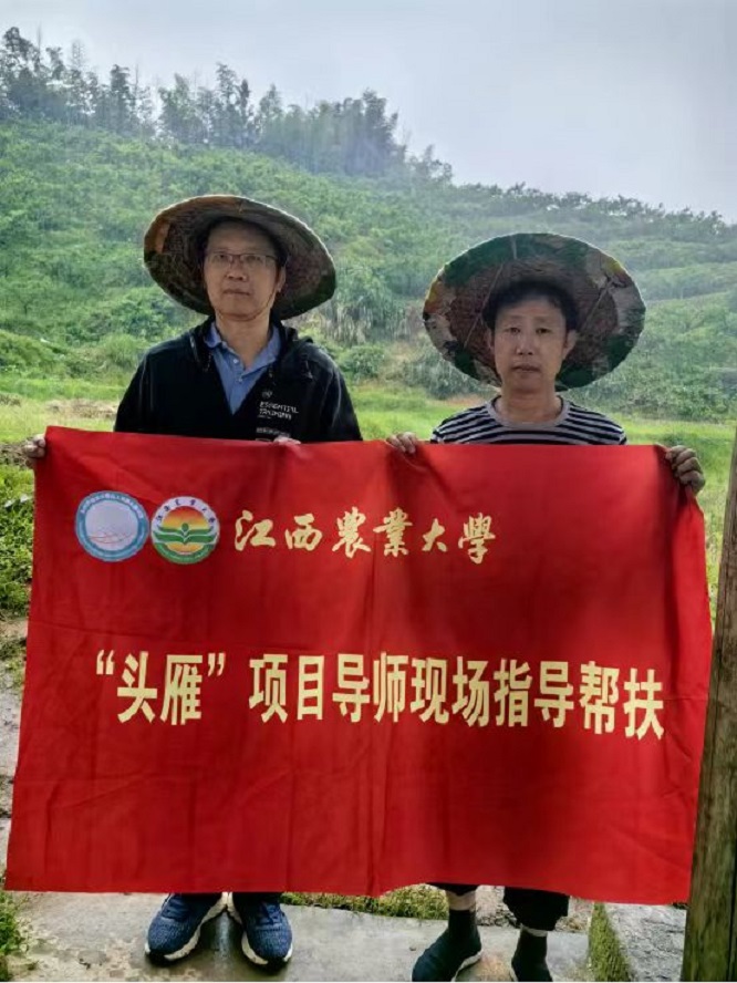 2024 年5月11日,应宜黄县农业局副局长吴国荣和学员曹亚清的邀请,针对基地蜜橘和桃子种植土壤肥力下降、果子残渣多、甜度以及病虫害等问题,化材院研究生支部黄喜根教授邀请邹建民副院长、农学院辜青青和林学院范国荣等教授/农业特派员冒雨实地调研并取土样,提出明确建议和方法,基地负责人曹亚清对专家的服务非常满意。