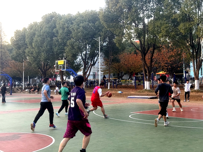 2023年11月28日下午,研究生支部委员兼化材学院教职工篮球队队长张晓华组织化材学院教职工篮球队与2023级新生院队举行了一场竞技性与趣味性相结合的师生篮球赛。此次活动既激发了师生强身健体的热情,也增进了师生之间的情感交流,加深了师生情谊。更最重要的是,有助于新生们尽快融入校园生活,从而获得归属感。