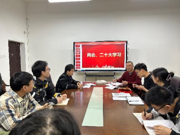 首先进行两会精神的解读,黄喜根同志主要对《政府工作报告》进行了概要性解读,并围绕“民生保障和经济发展”两大亮点内容重点阐述了自己的看法。学习结束,全体党员纷纷积极发言,就学习《政府工作报告》谈感想体会并展开热烈的讨论。一致认为《政府工作报告》在认真总结成绩的同时,紧紧把握国家新时代发展的规律,制定了客观实际的工作目标,也为研究生支部在新时代新征程上的发展指明了方向,吹响了新时代踔厉奋发再出发的冲锋号。