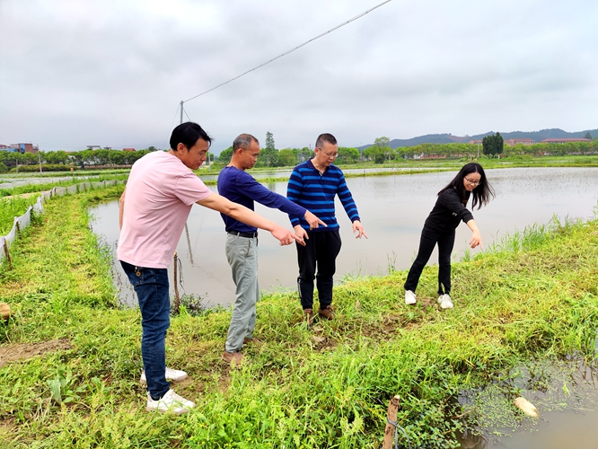 周亮总经理介绍了基地发展历程以及经营情况,大家认真听取并针对永新县栖凤塔农业科技有限公司的菌菇种植重茬产量偏低、病虫害问题情况以及永新县禾浩农业发展有限公司稻虾养殖密度过高、水体污染和虾壳综合利用等问题进行了分析、实地取样和指导。