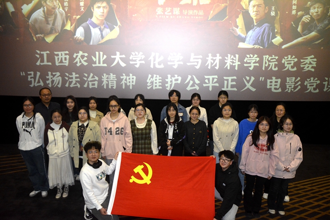 为强化党员队伍党性修养,激励广大党员干部勇担使命,增强党员法治意识,2024年3月26日15:40,学院党委组织全体师生党员开展以“弘扬法治精神 维护公平正义”为主题的电影党课—《第二十条》集体观影活动。本科生第二党支部党员参与本次集体观影活动。