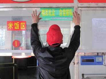 3月16日中午11:30,80余名理学院青年志愿者,身着统一志愿者服装,分成四组分赴校内和谐、博云、美食楼、集味四个餐厅,在各窗口列队维护就餐秩序。洁白的校服、鲜红的志愿者帽,顿时成为餐厅一道亮丽的风景线。广大就餐同学积极主动配合,自觉排队、按序就餐,并纷纷表示:这样的活动可以作为日常性的工作,使文明就餐成为大家的自觉行动。