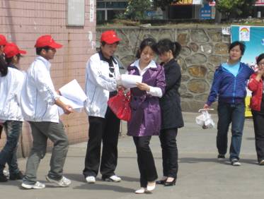 3月17日上午11:30,以“文明用餐,合理膳食”为主题的宣传活动如火如荼地开展。和谐食堂门口、南区广场门口,两条写有“喜迎农大七十华诞,争创文明饮食新风”的横幅,吸引了过往学生匆匆的脚步,纷纷顿足,在横幅上庄重地写下自己名字,以表示对志愿者行动的支持;另一队志愿者在各通道口向过往同学分发文明就餐倡议书和膳食营养宣传单;精心设计的宣传海报及宣传展板吸引住了过往同学的关注目光。