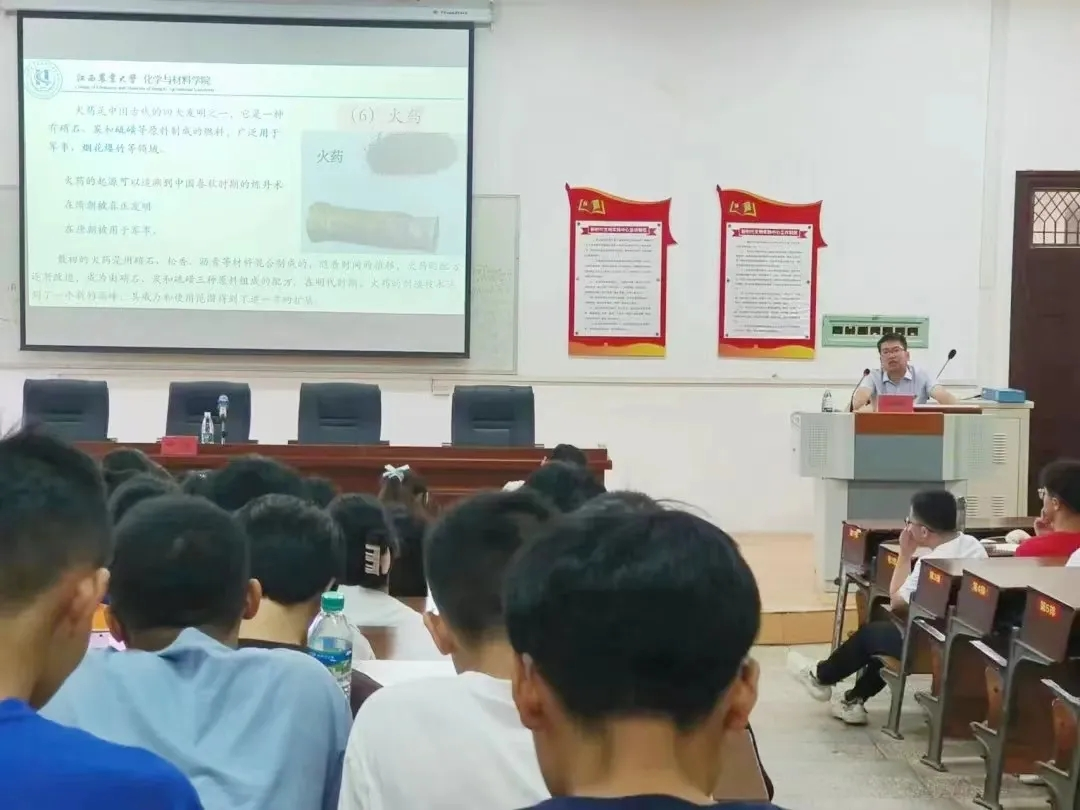 卢丽敏从漫话化学魔力、简述专业特色、浅谈大学能力培养三个方面展开介绍,用详实数据和典型事例论证了为什么要选择应用化学,展现了化学是一门具有实用性、创造性和科学性的学科,希望新生具备适应环境、自学、语言表达、独立自主、识人交友等能力。刘倩分别从学院概况、专业发展前沿、培养目标、专业发展前景、师资力量等方面介绍了材料化学专业,并对新生大学生活提出了三点建议,一是学习上要拼搏奋进,不负芳华;二是交友上要心胸开阔,开放包容;三是生活上要学会运动,培养爱好。