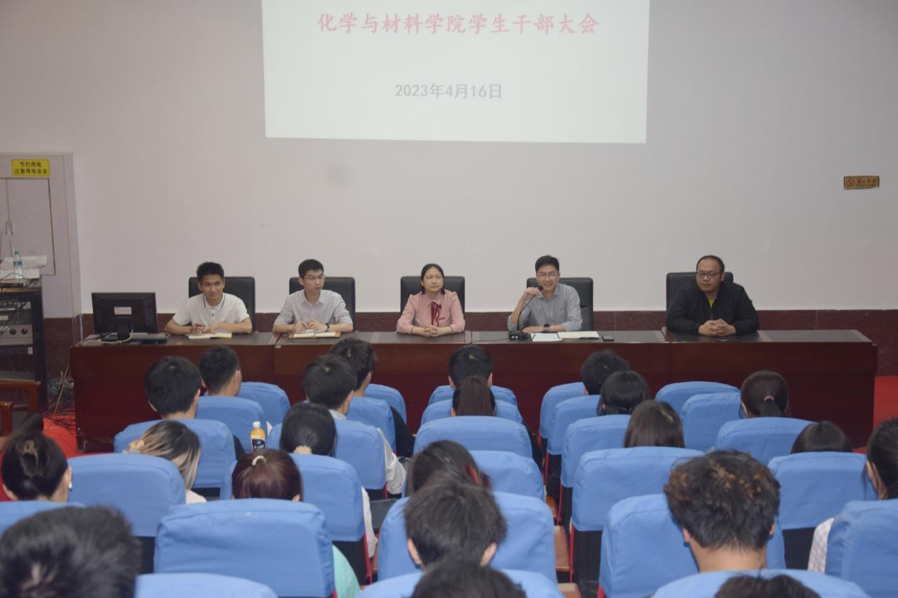 会上,叶健传达了校党委任命冷飞翔为化材院团委书记的决定,对冷飞翔来院工作表示热烈欢迎,希望全体学生干部要支持冷老师工作,让学院学生工作再上新台阶、再创新佳绩。同时表达了对学院原任团委书记、学工办主任彭玉萌老师辛勤工作的衷心感谢和在新的岗位上工作顺利的美好祝愿。