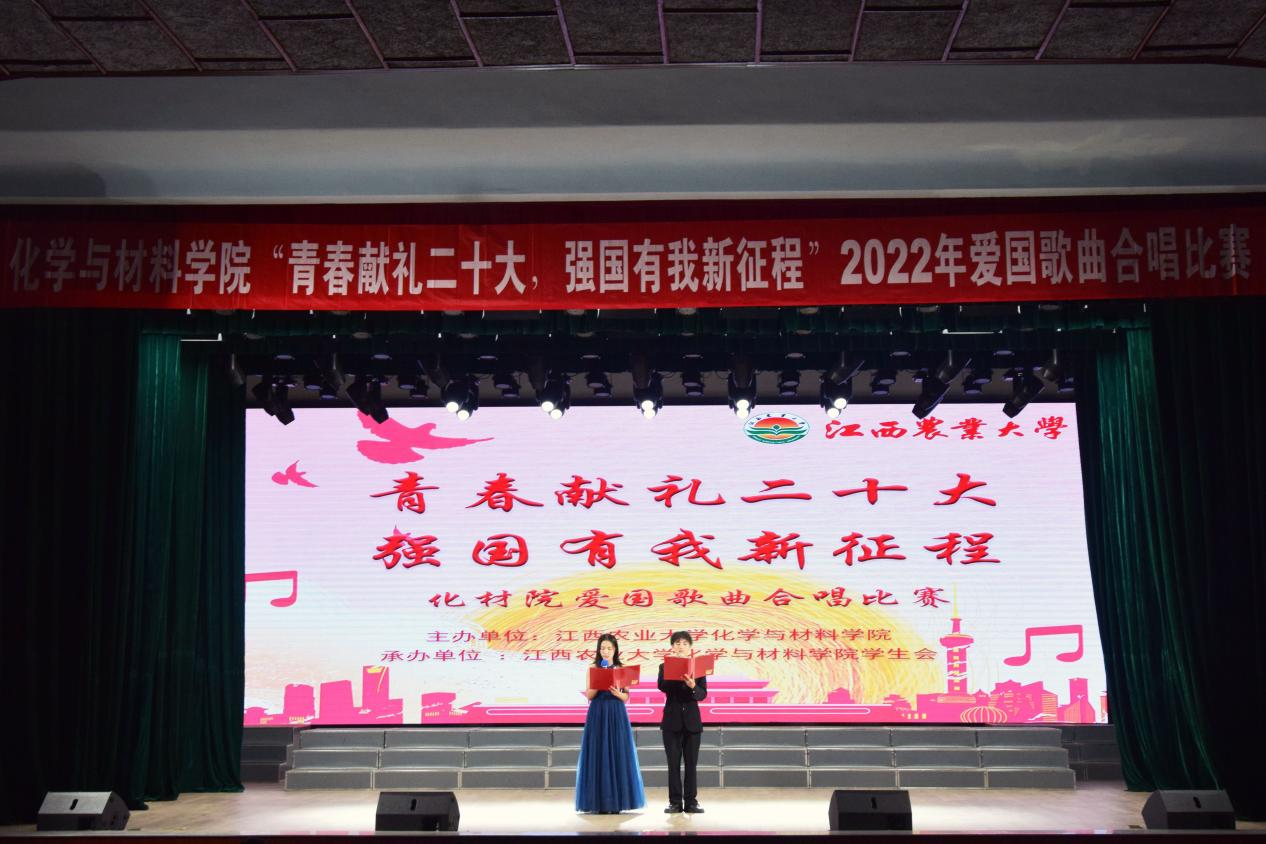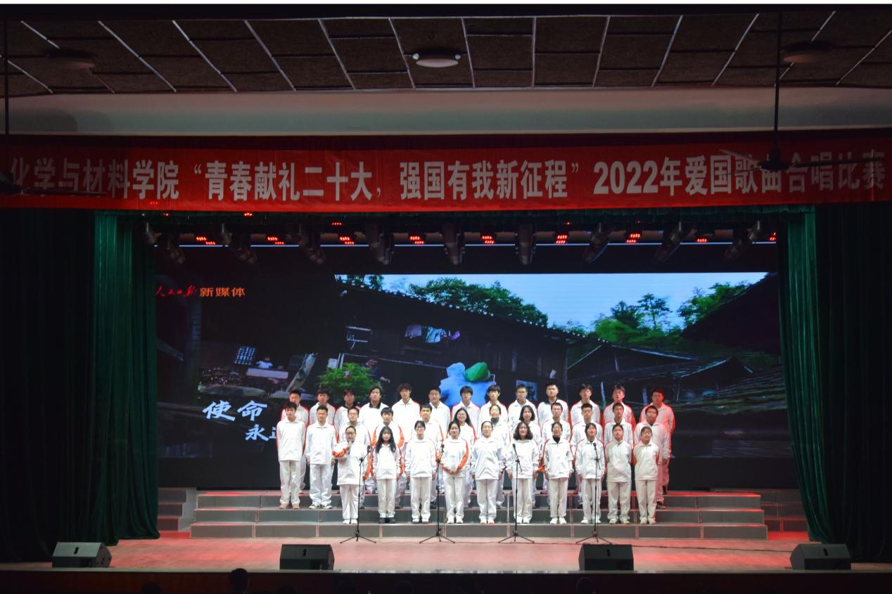 比赛以一首《唱支山歌给党听》拉开序幕,13个参赛班级依次走上舞台进行合唱,《歌唱祖国》、《我的祖国》、《没有共产党就没有新中国》……一首首红色经典歌曲描绘出了共产党人一路走来的峥嵘岁月,唱响了同学们的青春与梦想。合唱中,各合唱团还融入了朗诵、手语等元素,饱含深情地表达出了对党和祖国深深的热爱和美好的祝福。来自人文与公共管理学院的高培策、涂娜同学献唱的特别节目《共和国之恋》更是将整个活动气氛推向了高潮。经过激烈角逐,最终应化2202班获得一等奖,材料2101班、应化2203班获得二等奖,应化2002班、应化2201班、材料2202班获得三等奖。