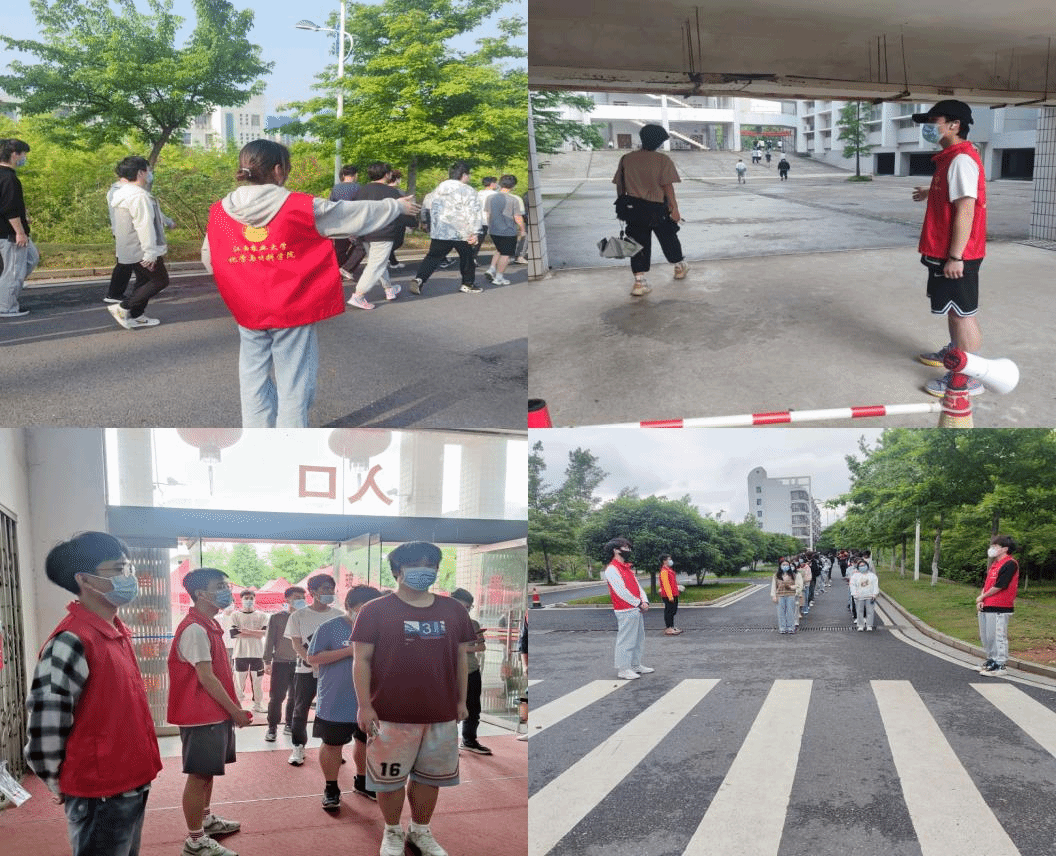 “同学们,起床做核酸了。”早晨六点,学生党员志愿者周文鸿正在学生寝室逐一敲门,连续十六轮核酸检测,学生党员用实际行动诠释着使命担当。早起组织同学有序进行核酸检测、校园巡查督促同学拒绝快递外卖、食堂值班提醒同学错峰取餐、宿舍站岗呼吁同学垃圾下楼,在核酸检测点、在食堂、在校园里,处处都活跃着“红马甲”。“老师,他们手速好快呀,下次招募志愿者,能不能‘安排’我一下。”毕业生党员王名杨一句话道出了许多学生党员的心声。在这场疫情防控阻击战中,学生党员用一次次志愿服务让党员的身份亮起来、让鲜红的党旗飘起来,用理想和信念在青春的赛道上奋力奔跑,争取跑出当代青年的最好成绩。