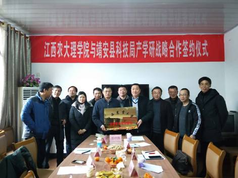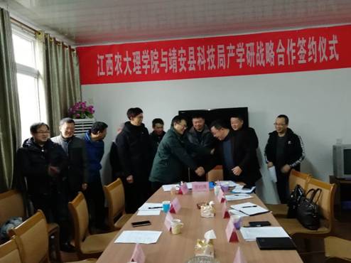 2019年1月9日,在靖安县委常委兼宣传部长谢文亮、县科技局局长曾祥龙、副局长练耀东等领导陪同下,英国365官网院长王义华教授、副院长黄长干教授代表学院与靖安县科技局及有关公司举行了产学研战略合作签约仪式,并给于“英国上市公司365创新创业实践基地”授牌。英国365官网江西省科技特派员成员刘光斌、涂海华、李小毛、黄建平、曾黎明、文阳平、胡秀霞等老师一同参加了上述仪式并深入企业指导开展科技服务活动。