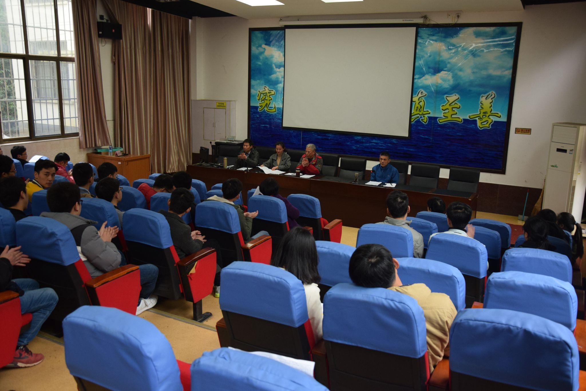 3月19日下午理学院在院一楼阶梯报告厅召开考研复试与调剂指导会,会议邀请了校研究生处周红燕副书记做指导嘉宾。参加本次会议的有理学院党委书记周阳、党委副书记周国平、副院长黄长干、院团委书记李莉萍、各毕业班班主任、专业老师代表以及2014级的考研上线学生共40余人。会议由院党委副书记周国平主持。