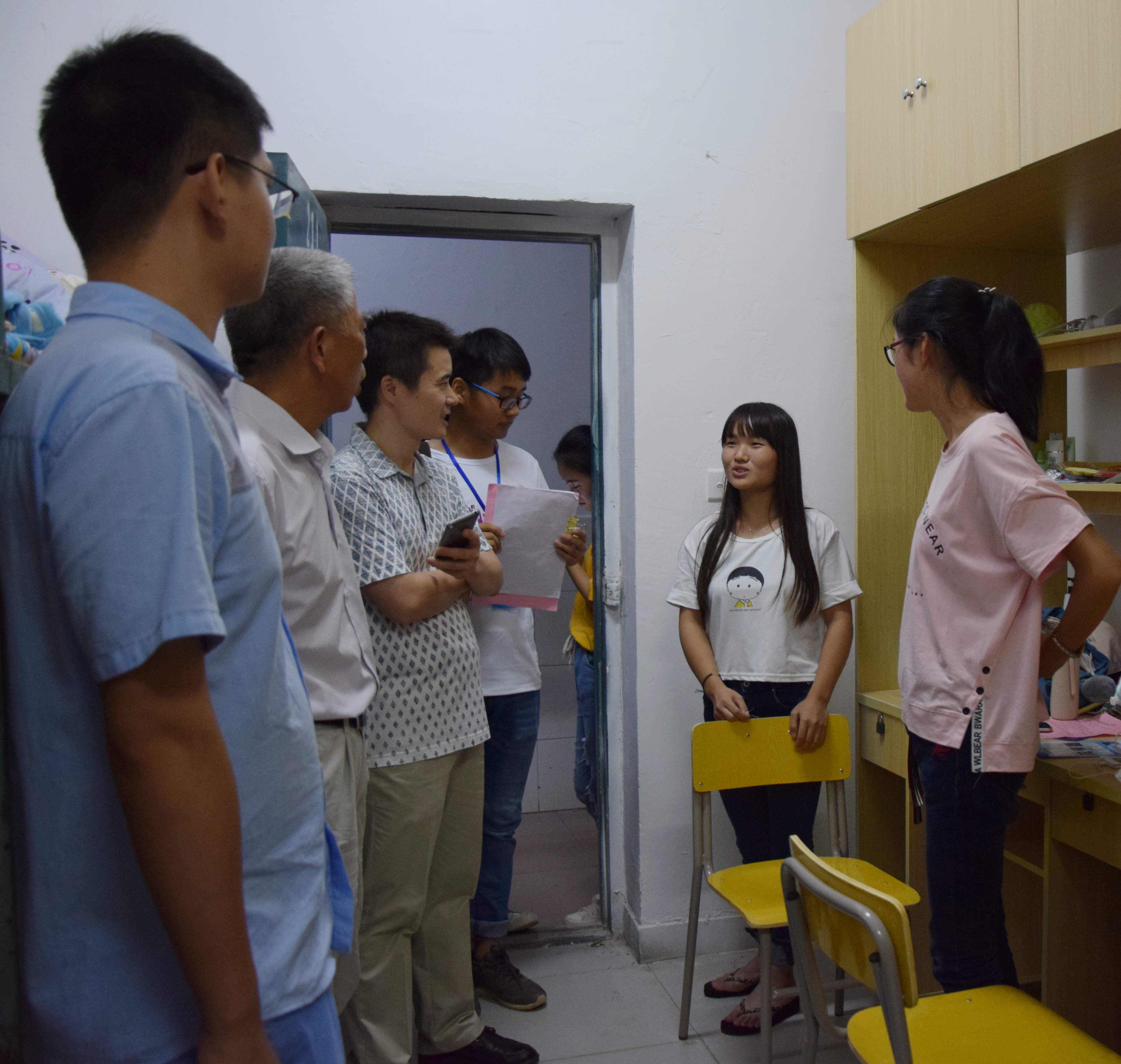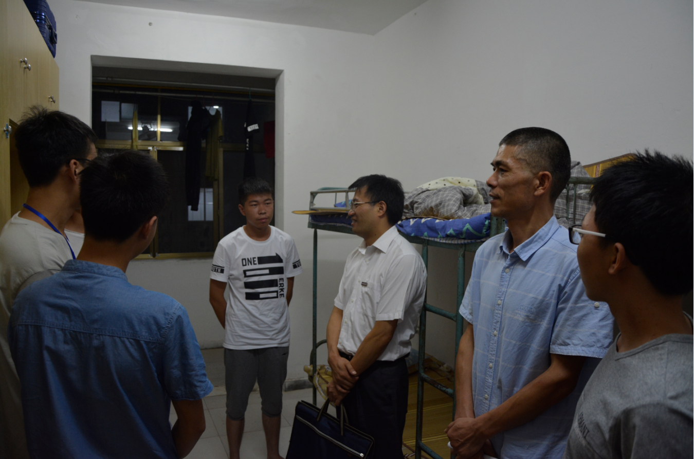 9月16日晚,学院党委书记周阳、院长王义华、副书记周国平会同新生班级班主任和辅导员走访2017级新生。