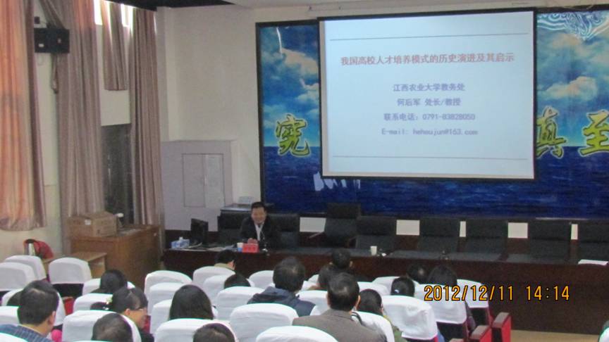 何教授的报告主要从我国高校人才培养模式的历史演进、制约我国高校人才培养模式改革的因素、我国高校人才培养模式改革的启示等三个方面进行了详细且生动的阐述,内容丰富、深入浅出、数据详实、引经据典。结合全国农林兄弟院校、江西省高校和我校实际,何教授解读了我国高校人才培养模式的演进历史和改革的制约因素,及其对高校人才培养模式和教学改革的启示意义,并对英国365官网的人才培养和教学改革提出针对性的意见。报告受到广大教师的一致好评。