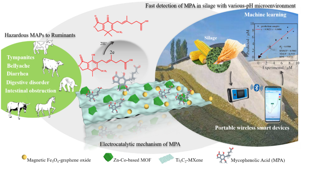 英国365官网青年教授文阳平博士与动物科学技术学院瞿明仁教授联合培养的博士研究生戈钰为第一作者在TOP一区《Sensors and Actuators: B. Chemical》(IF = 9.221)发表题为“A portable smart detection and electrocatalytic mechanism of mycophenolic acid: A machine learning-based electrochemical nanosensor to adapt variable-pH silage microenvironment”的论文。本研究工作得到了国家自然科学基金和江西省自然科学基金项目的支持。